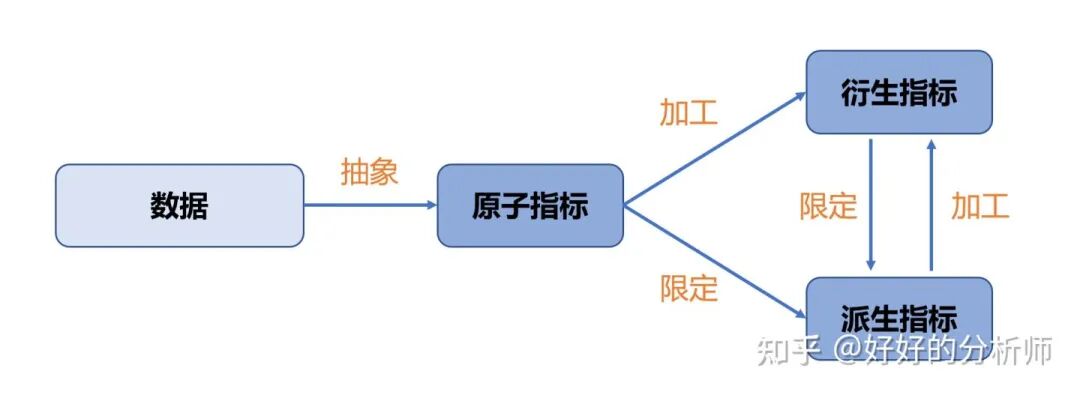 结合统计与数据治理视角,我们可以将指标的设计过程分为三个步骤:抽象、加工、限定。