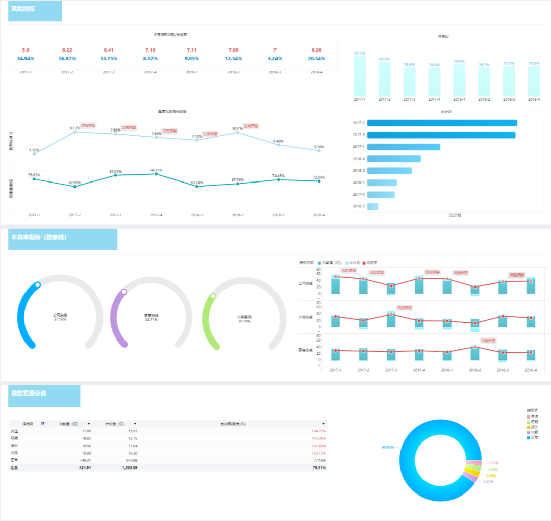 分析指标:不良贷款余额、不良贷款完成率、存货比、比计划、季度风险指标、贷款五级分类占比 -