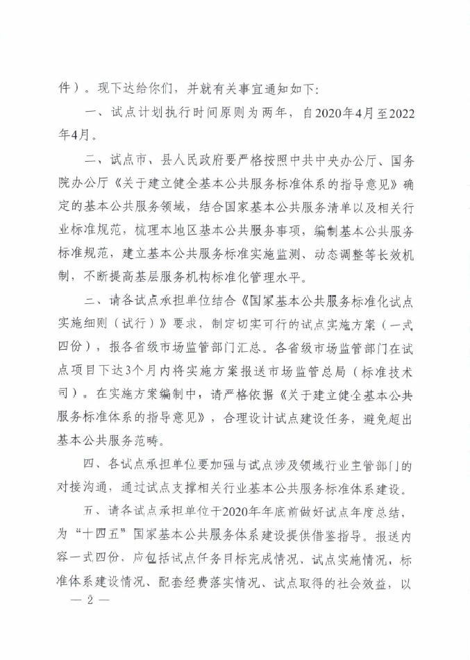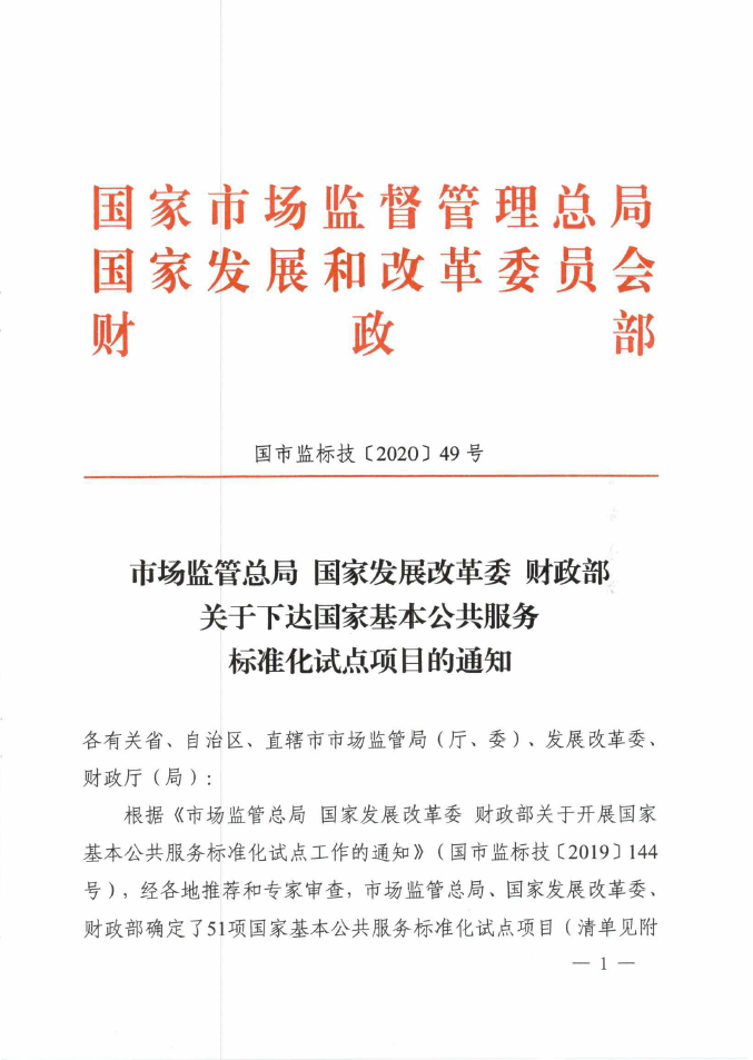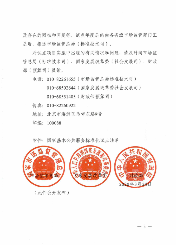 市场监管总局 国家发展改革委 财政部关于下达国家基本公共服务标准化试点项目的通知