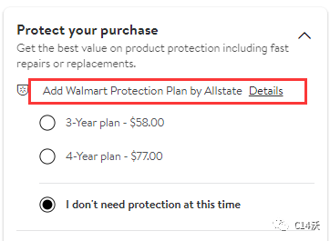A:这个是客户购买的,你可以看detail那里有解释,每天只需几分钱即可获得多年的保护。计划涵盖: 机械和电气故障,正常使用或正常磨损造成的物品故障,其他常见故障。计划包括: 24/7 客户支持,轻松在线理赔 快速维修或更换,今天保护它。享受它多年。只需像往常一样将沃尔玛保护计划添加到您的订单和结帐中。无需注册您的计划即可激活。购买后,我们会将计划详细信息发送到您的电子邮件地址。Allstate 支持的屡获殊荣的保护 85 多年来,Allstate 一直在保护人们和他们最爱的事物。所以你知道你的购买是在良好的手中。
