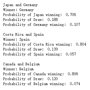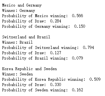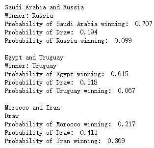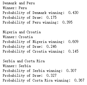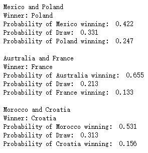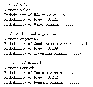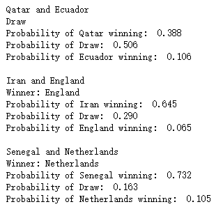 上述预测的结果针对的是2018年俄罗斯世界杯小组赛的对阵情况,那么2022年卡塔尔世界杯小组赛的预测,我们只需要将fixture数据集更新一下即可