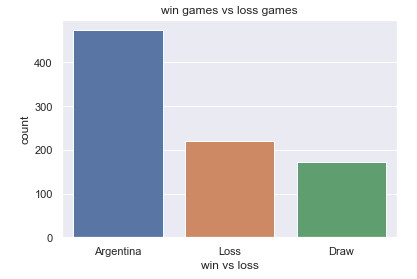 我们将比赛的结果的统计可视化出来,其中我们就能清晰地看到阿根廷球队的胜负率的情况,代码如下
