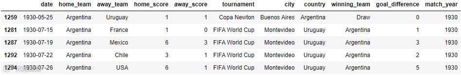 df = results[(results["home_team"] == "Argentina") | (results["away_team"] == "Argentina")]