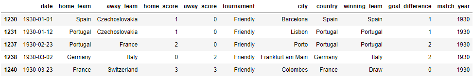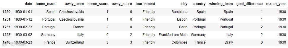 我们着重看的是1930年之后的比赛记录,那么我们再进行一次筛选,代码如下