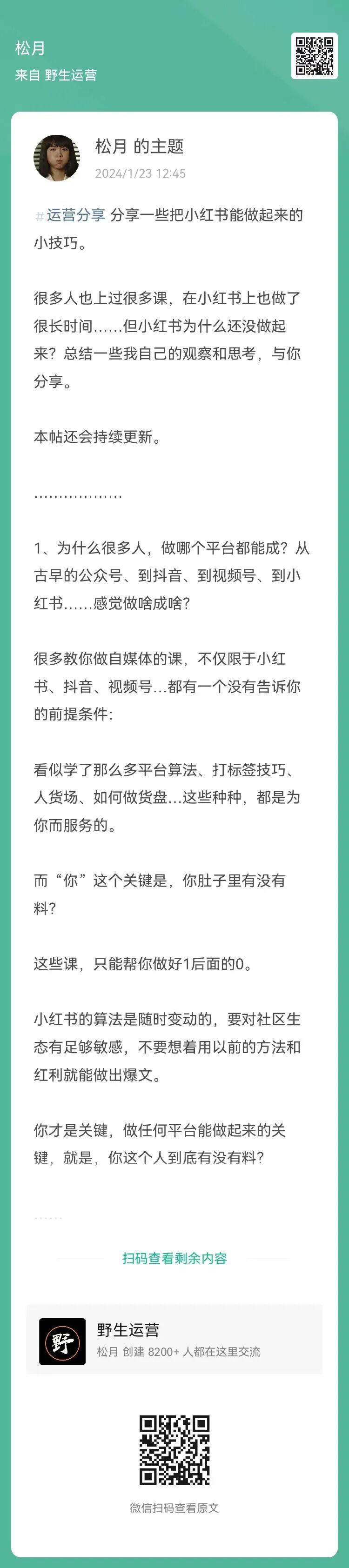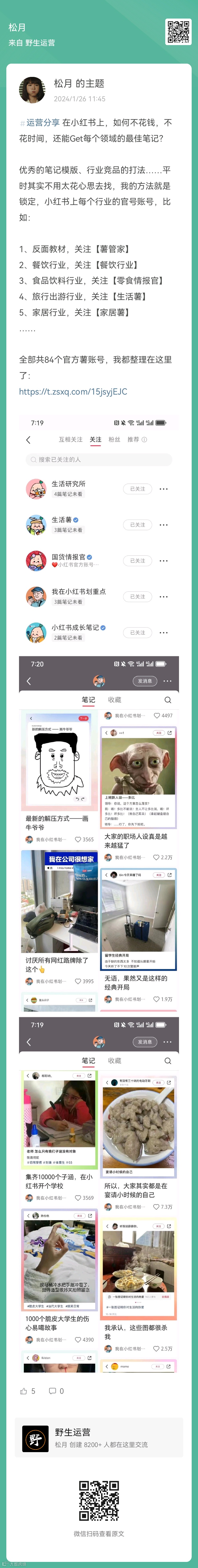 7、松月:分享一些把小红书能做起来的小技巧(扫码查看全文)