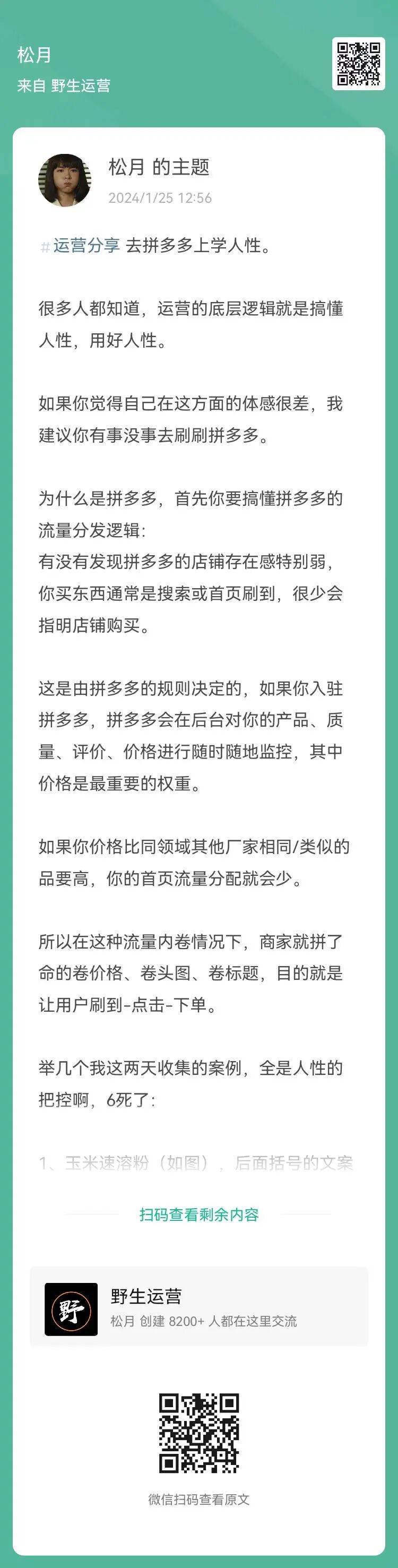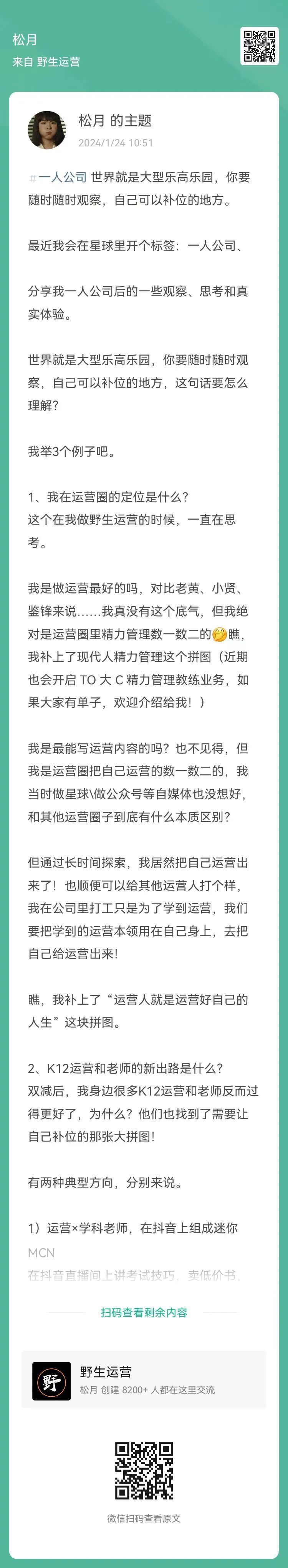 现在加入/续费【野生运营】星球