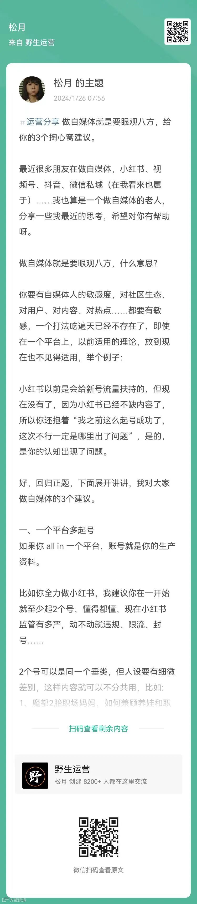 17、松月:做自媒体就是要眼观八方,给你的3个掏心窝建议(扫码查看全文)
