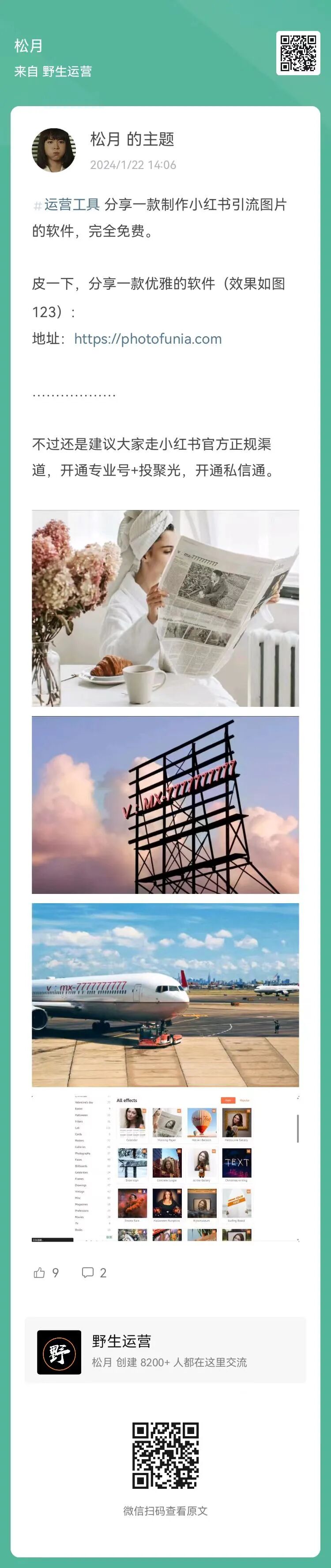 3、松月:分享一款制作小红书引流图片的软件,完全免费(扫码查看全文)
