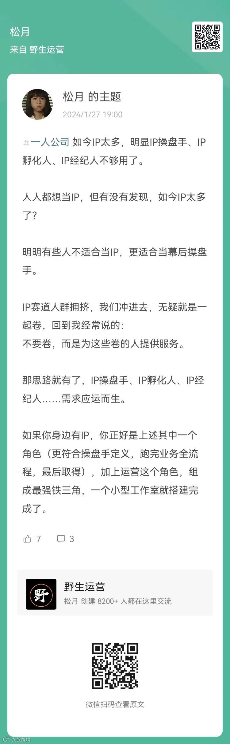 20、松月:如今IP太多,明显IP操盘手、IP孵化人、IP经纪人不够用了(扫码查看全文)
