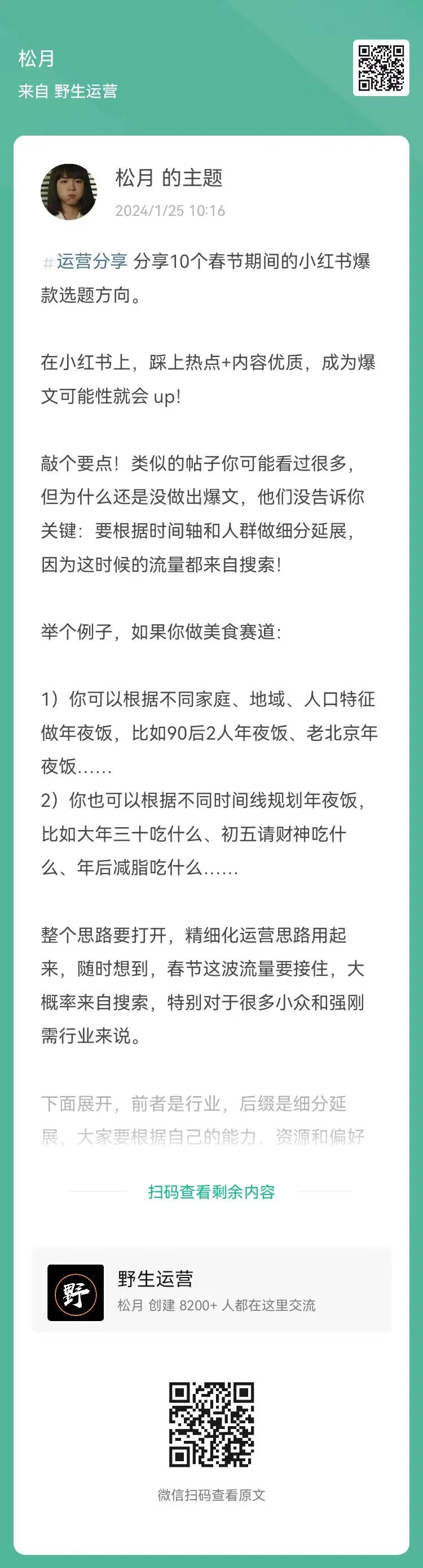14、松月:分享10个春节期间的小红书爆款选题方向(扫码查看全文)