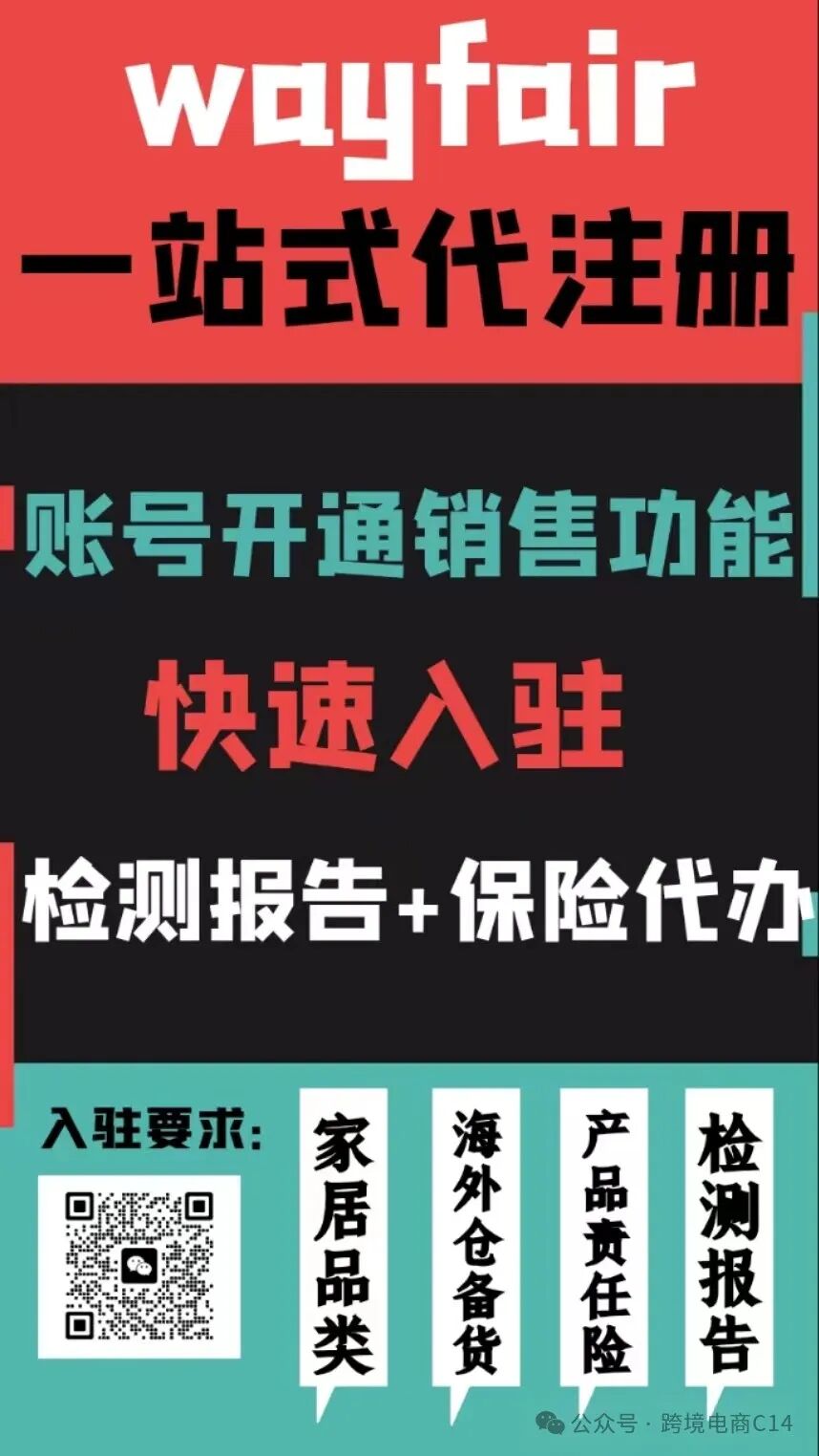 “跨境电商C14”应该是全行业拥有最全面、最系统化、最新的关于wayfair、walmart平台的干货、资讯的公众号,如果你在做或者打算做wayfair、walmart平台,请点击上方公众号关注、标星!