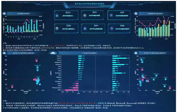 也不是说这个表做错了,但实在没有能让人多看两眼的欲望,领导费劲看了半天也无法提取有效数据。而你擅长数据可视化的同事做的报表,简洁直观,数据可视化程度高,配色高级。