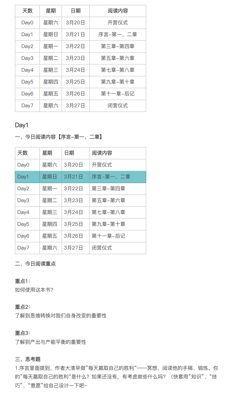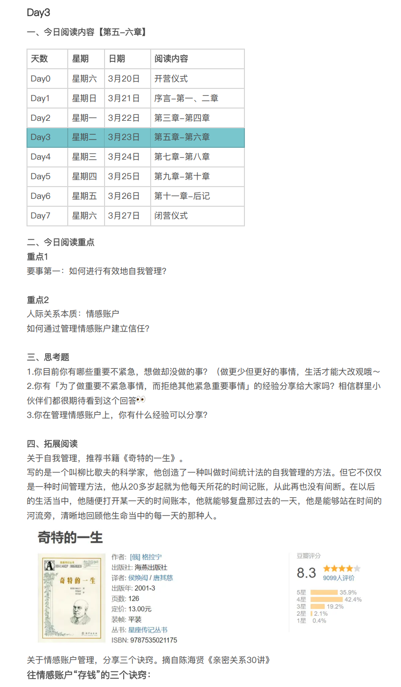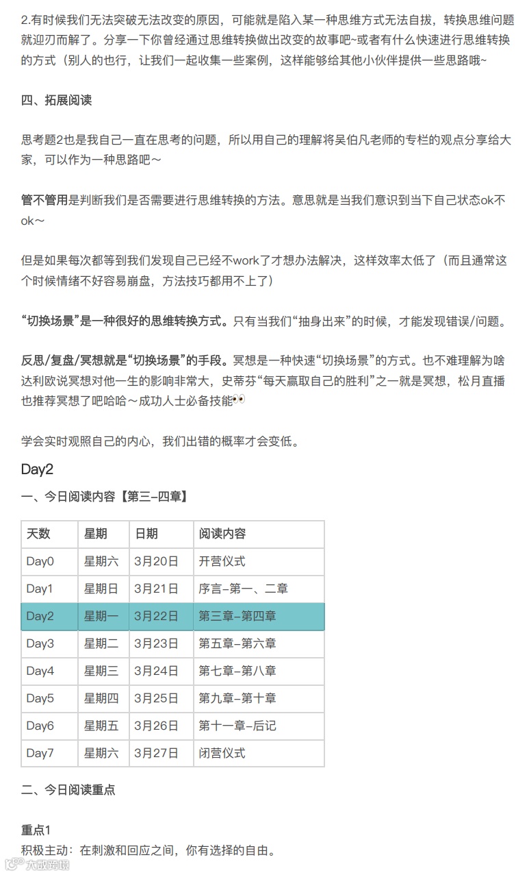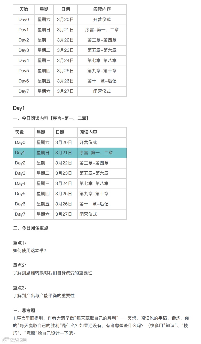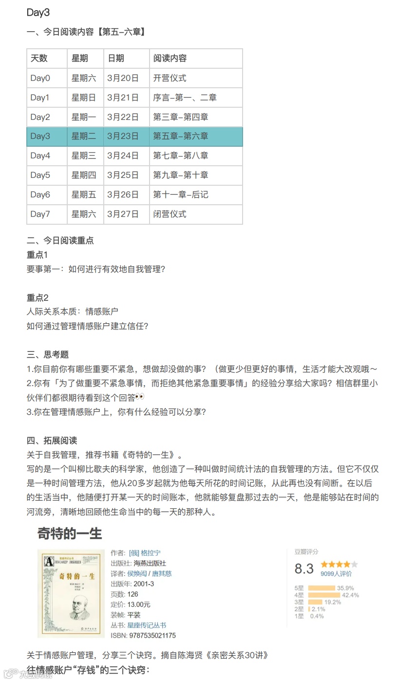 读书日每天24点前,需要完成当日的读书任务(300+字原创读书笔记)提交在作业群里每天24点前,需要在作业群里点评2个对你最有启发的笔记