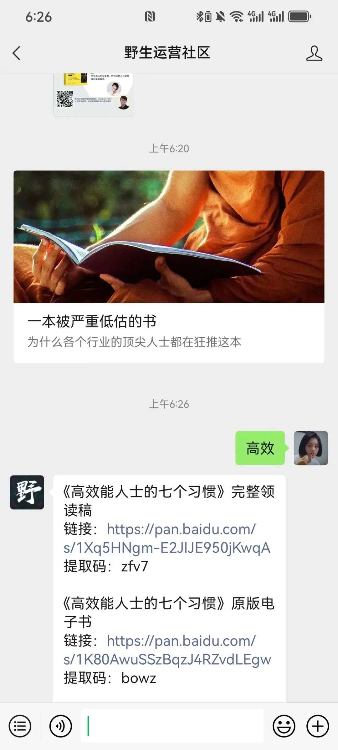 以上,为《高效能人士的七个习惯》领读稿部分精华内容,如果你想获取本书完整领读稿和完整电子原书,可关注本公众号,在后台回复“高效”就能免费领取了哦,如图: