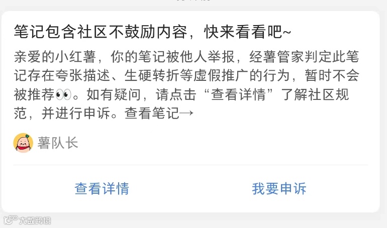 解决方法:修改笔记中一个字或者直接申诉都可以,促进平台重新审核就好。