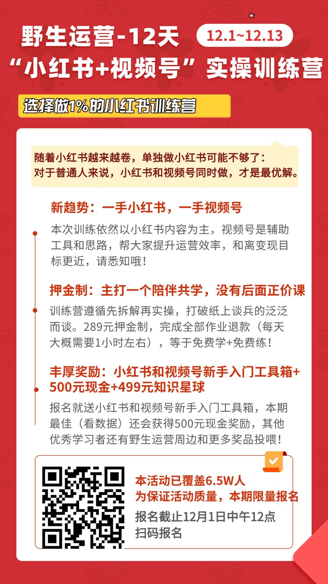 敲黑板:本次训练营依然以小红书内容为主,视频号是辅助工具和思路,帮大家提升运营效率,和离变现目标更近,请悉知哦!