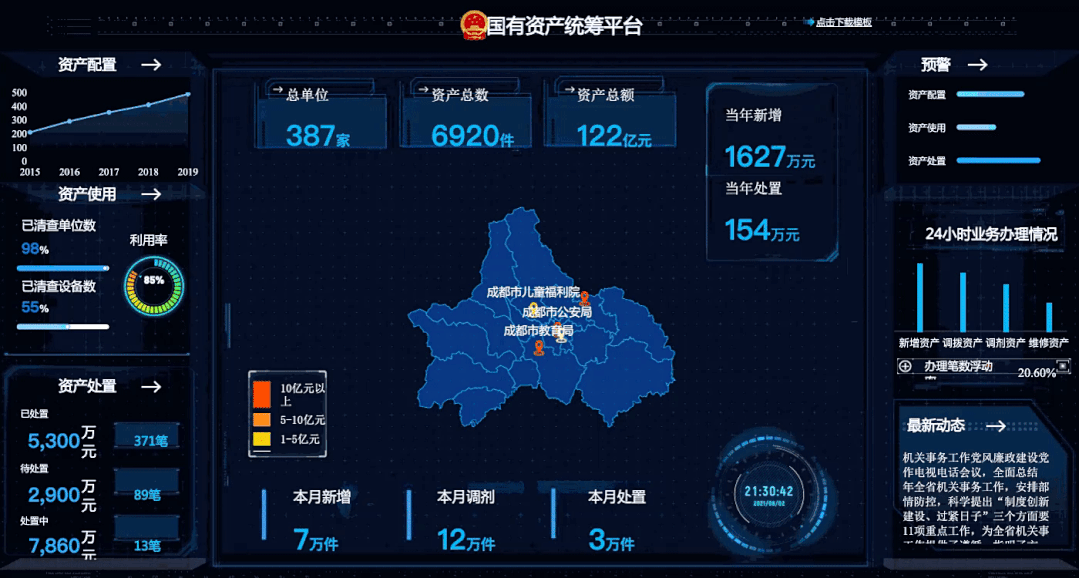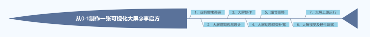 今天在(下)篇,我们会继续讲第三步到第七步:从大屏模板制作→动态特效补充→细节调整→大屏视觉及硬件调试→上线运行。
