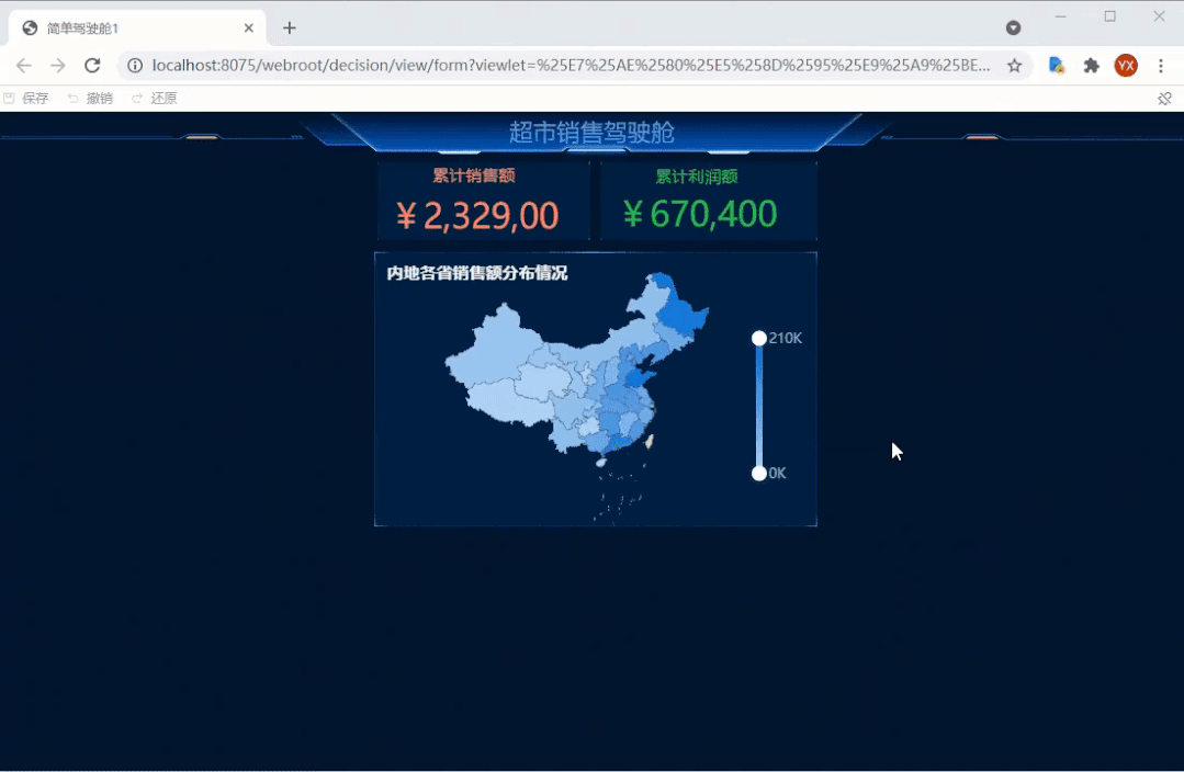 在确定完组件样式后,就可以预览可视化大屏,能直接在浏览器中调整组件的位置大小。