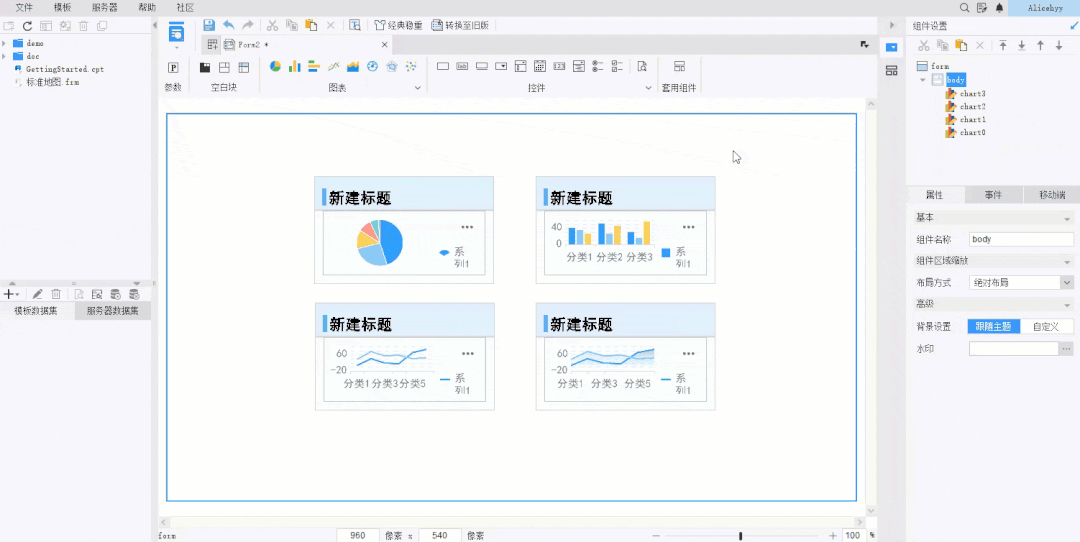 step1:打开FineReport,新建一张空白的可视化大屏画布/直接选择一个布局模板