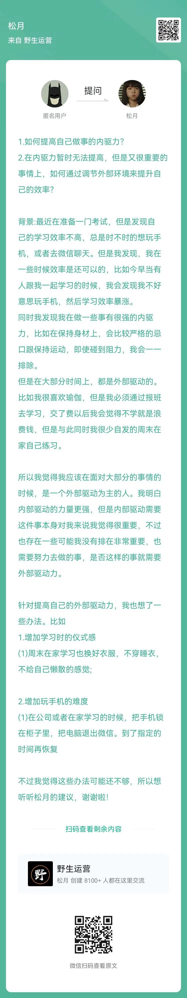 2、提问:如何提高自己做事的内驱力?(扫码查看全文)