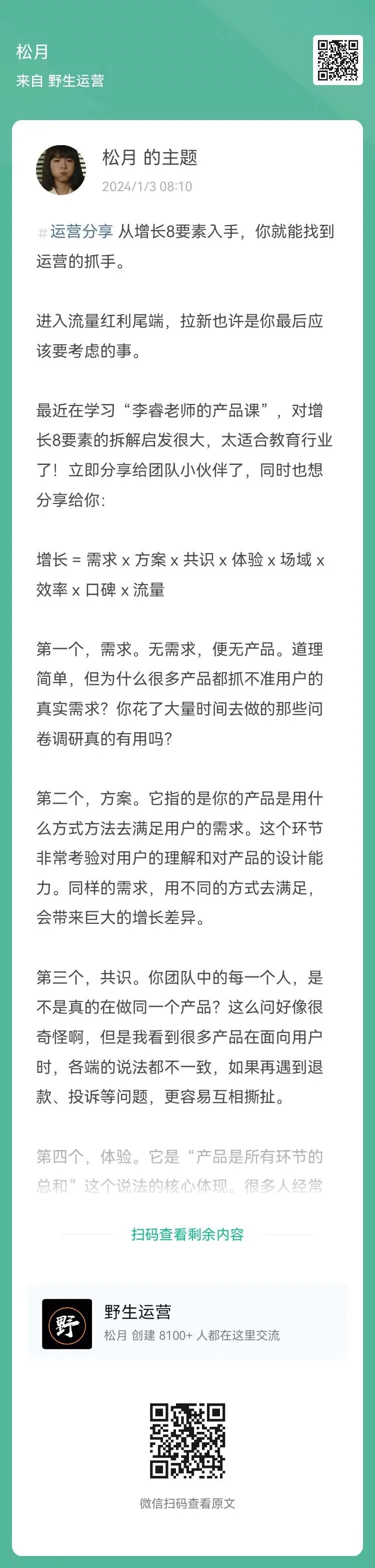 5、松月:从增长8要素入手,你就能找到运营的抓手