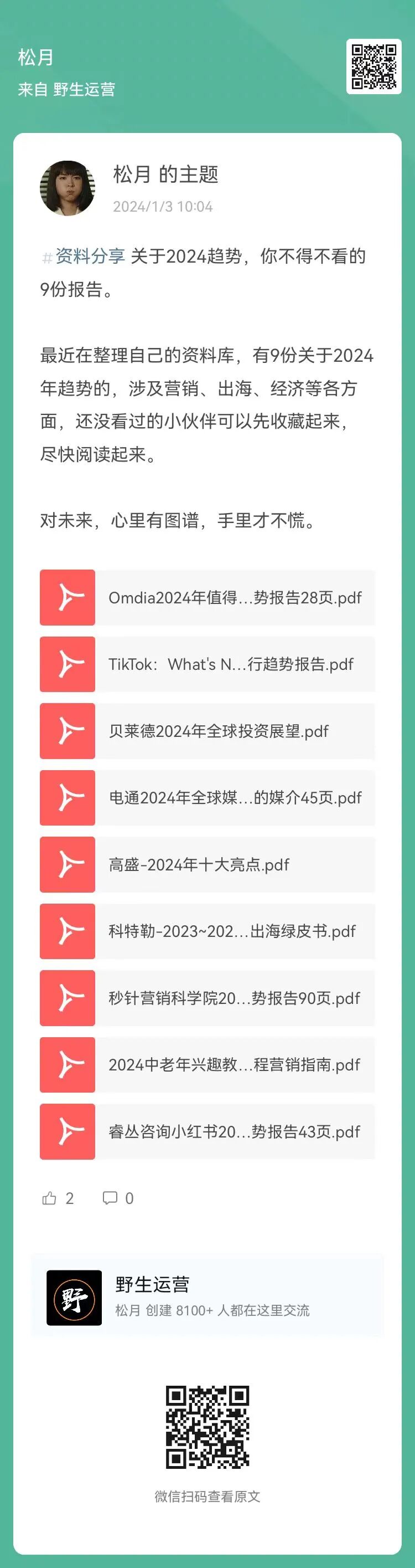 野生运营知识星球,每周会产生大量精华内容,每周一为你整理《野生运营:一周星球内参》,让你不错过任何一条有价值的信息。话不多说,这就开始!
