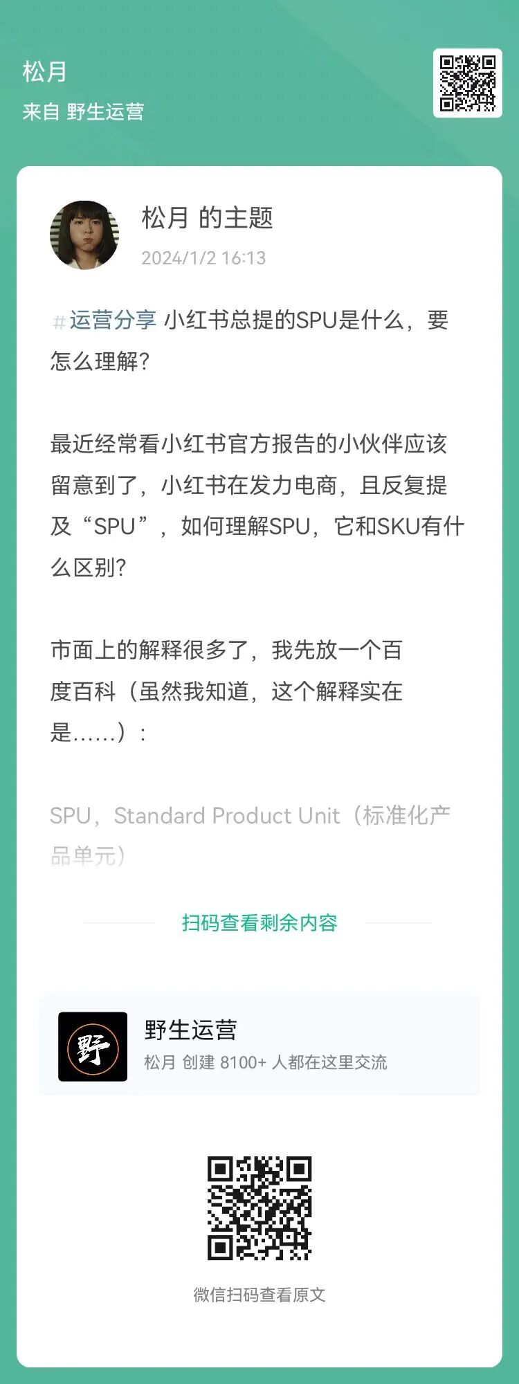 2、松月:小红书总提的SPU是什么,要怎么理解?