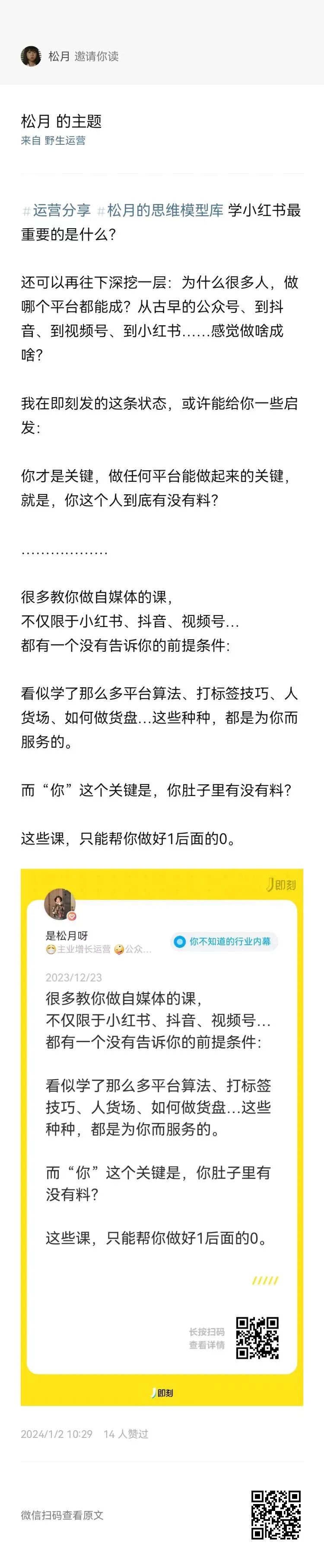 13、松月:强烈建议,做小红书的个人要和品牌方去学方法论