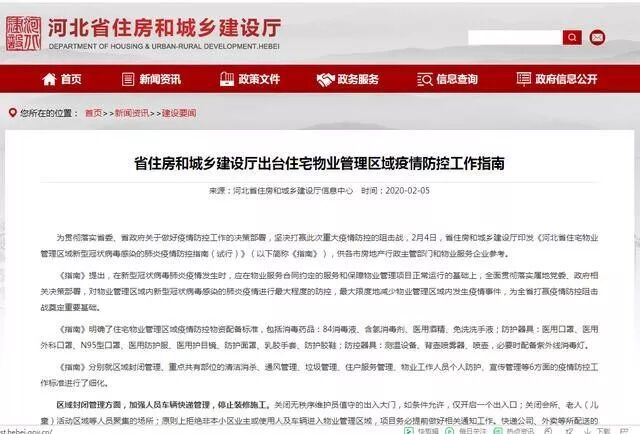 导读:从河北省住房和城乡建设厅官网获悉,为贯彻落实河北省委、省政府关于做好疫情防控工作的决策部署,坚决打赢此次重大