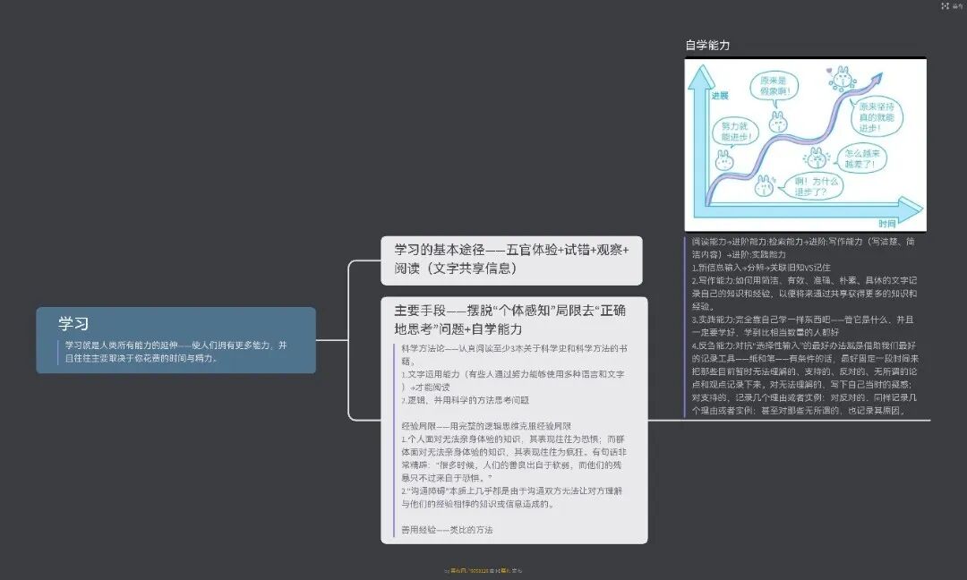 【新知|学习的概念】 【获取知识的方法——五官体验+试错+观察+阅读】 【自学能力中有哪些能力——阅读能力➡️检索能力➡️写作能力➡️实践能力➡️反刍能力】 我最常用的方法时—阅读;其实试错在不知不觉也在做,但因为总结不连续,很多时候就试过就过了。我自学能力的修养—阅读能力✅检索能力❌写作能力❌实践能力✅反刍能力✅ 【如何更好的应用上述方法和技能?】 1)、五官体验+反馈表达(说or写)+反刍总结 2)、试错+反刍总结 3)、观察首先要有跳脱本体的沉静心态,像旁观人一样看现象➡️归类分辨 4)、阅读+随即记录想法(幕布+路上看)➡️读书会交流思考(写作能力&思考的反刍—作者说的对么?)➡️加入计划流程(todo—>doing)➡️反刍能力=总结doing做的如何➡️更迭概念库➡️去做新的阅读