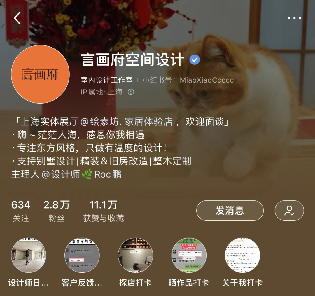 21年的10月份又创立的言画府空间设计,目前这个账号也是我的一个主账号之一。