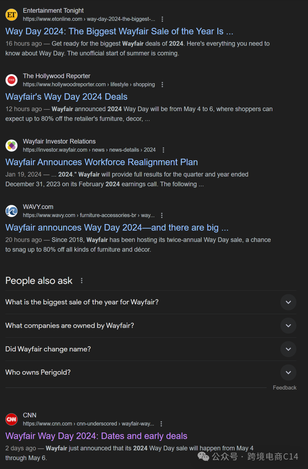 “跨境电商C14”应该是全行业拥有最全面、最系统化、最新的关于wayfair、walmart平台的干货、资讯的公众号,如果你在做或者打算做wayfair、walmart平台,请点击上方公众号关注、标星!