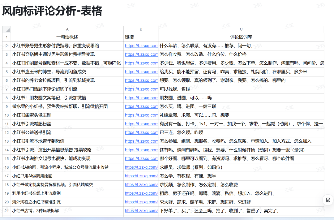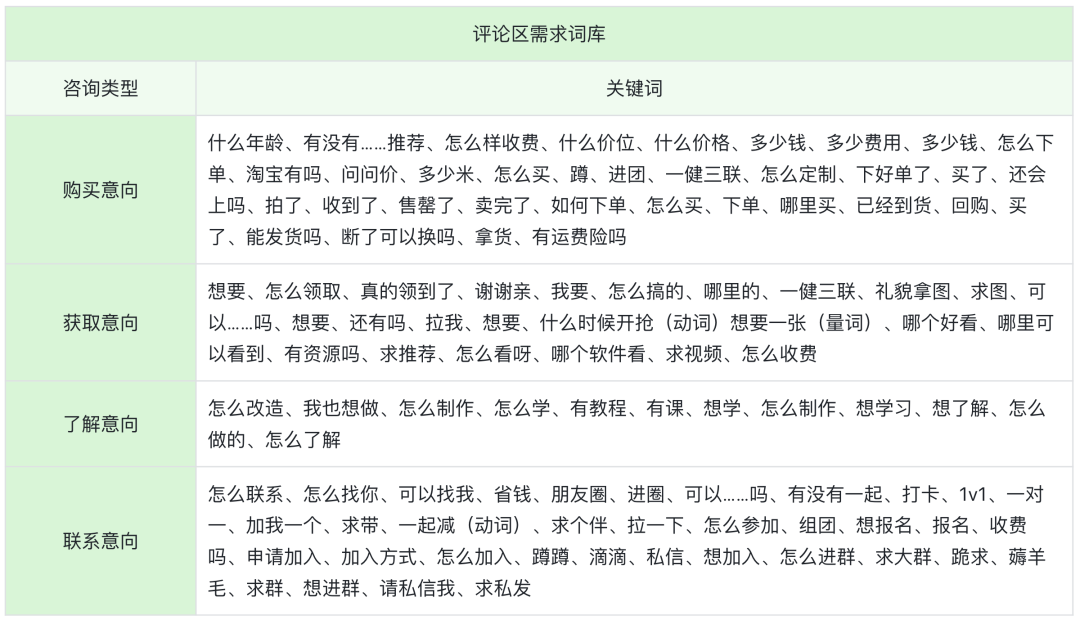 一顿操作猛如虎,构建起了评论区需求词库。