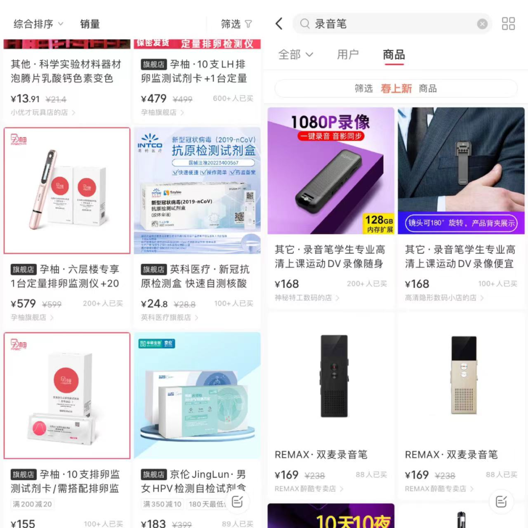 我们取【化学试剂】【录音笔】,到小红书检索,以此来挖掘更多细分品类。