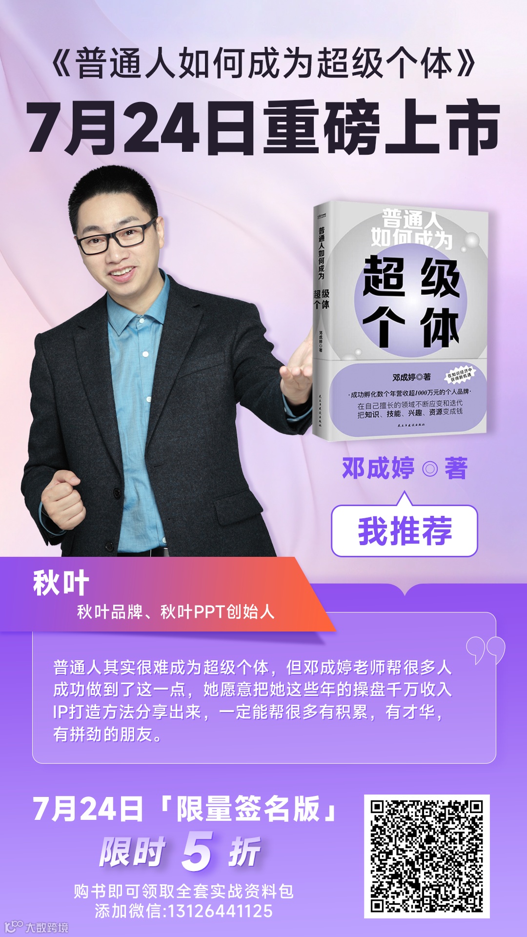 如果你也想成为一名超级个体,在实现自身价值的同时,也能够有好的收入,一定要给自己尝试的机会。