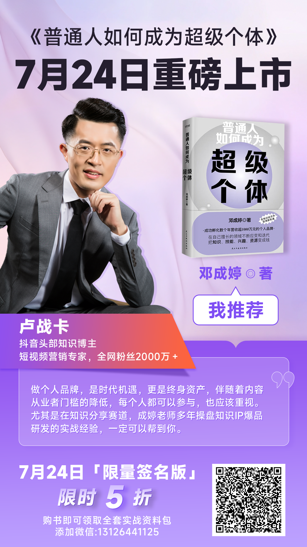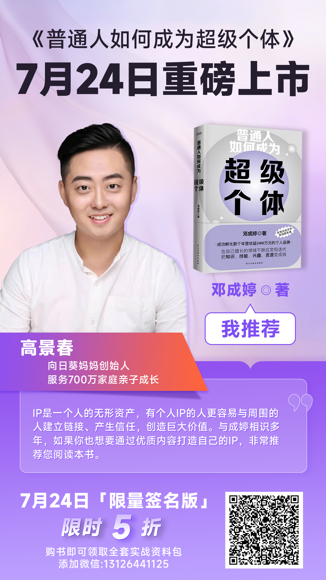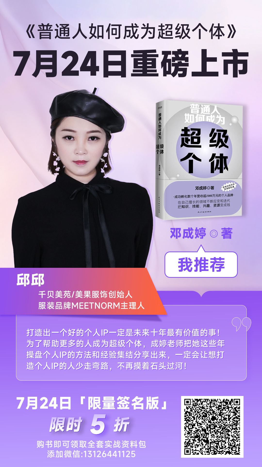 而今年7月推出的这本新书,就是我这8年自我成长和千万级IP孵化方法论的总结。