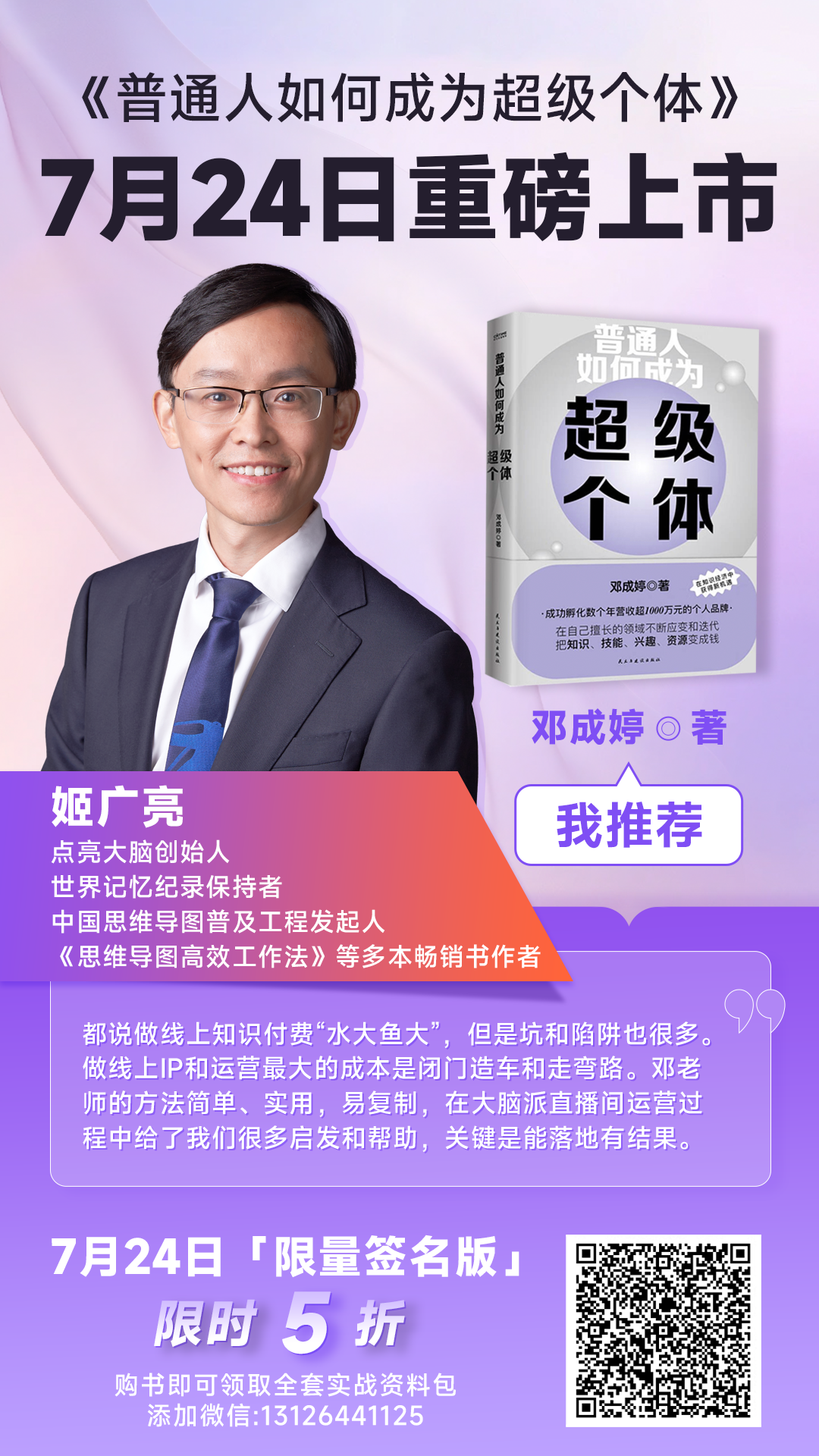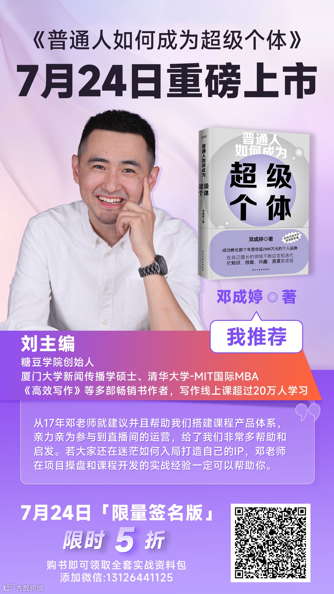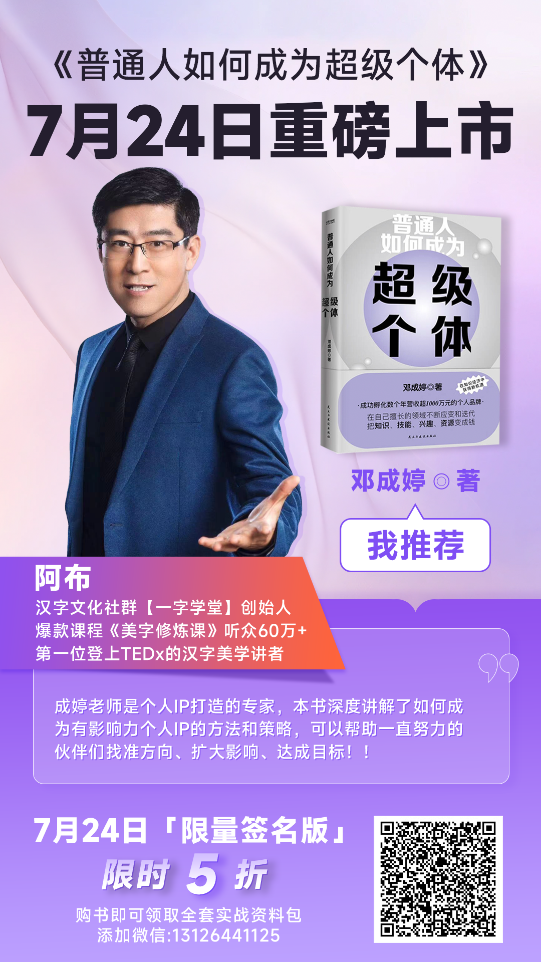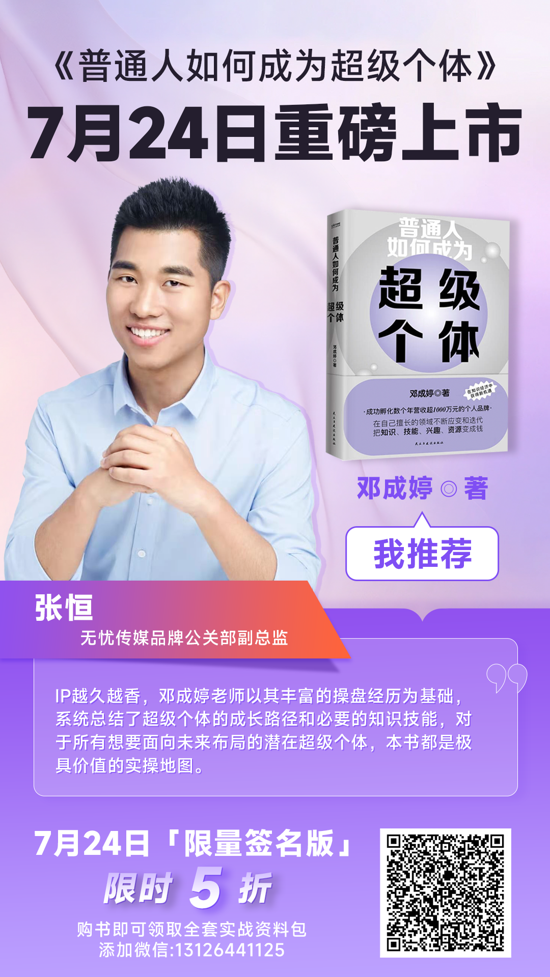 而今年7月推出的这本新书,就是我这8年自我成长和千万级IP孵化方法论的总结。