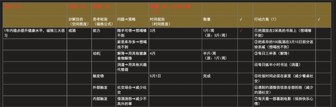 我自己是比较喜欢用OGSM模型帮助自己来管理目标,而不是OKR。