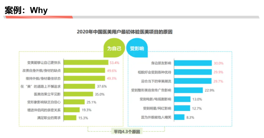 Why:用户当初体验医美项目的原因:是真正主观需要,还是受客观因素的影响。