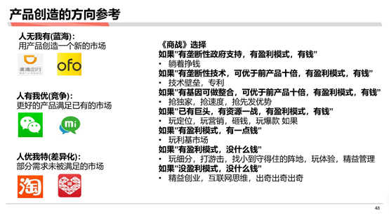 调研:需求调研“是否用户真的需要”-对手已经成功就无需验证、对手已经失败不要重复踩。例子:便利店可否增加鲜花业务先看711为啥没有做?(这个想法就可能省了很多钱,如果直接试点 成本会很高。通过竞品分析,就把业务假设验证出来)