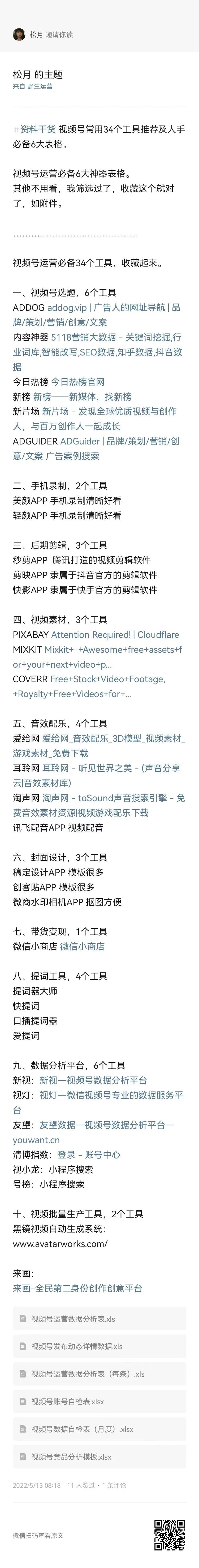 文末加餐:运营人需要的视频号常用34个工具推荐及人手必备6大表格,堪称万能帖