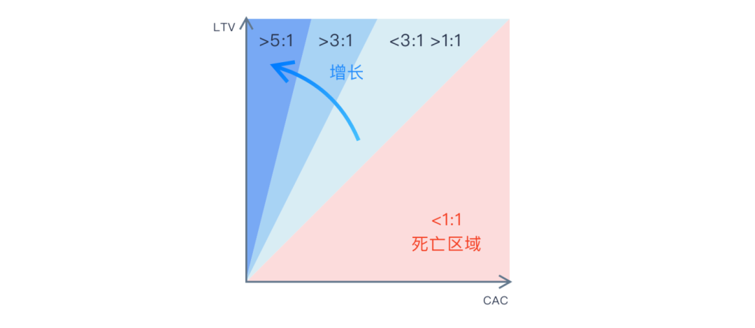 1. 指导获客成本。客户终身价值可以指导我们应该花多少钱来获客,一般而言,LTV:CAC(获客成本) ≥3 被认为是健康的标准。