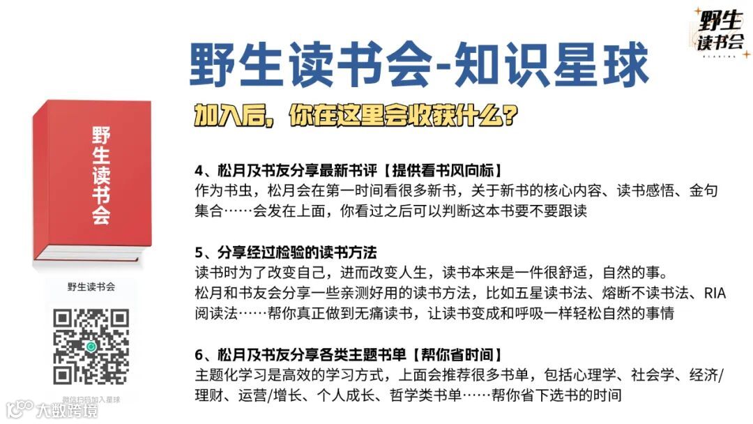 在野生读书会,还有很多这样的读书方法总结,如果你想获得更多,记得来加入我们吧!