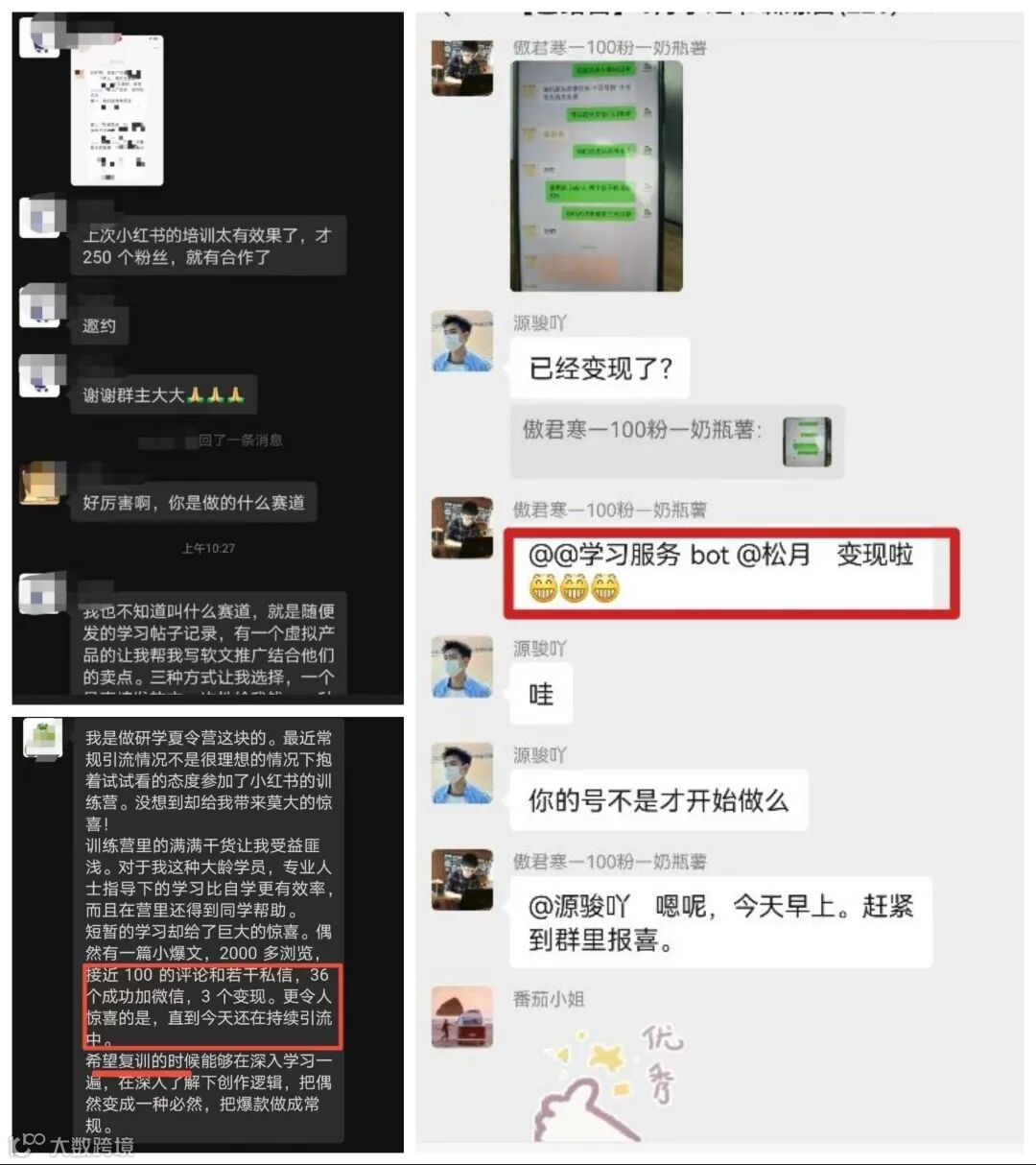 不少小伙伴通过参与咱们的训练营掌握了:做小红书的基本逻辑和方法,成果也是非常丰硕:有人接到了商单、有人私域引流不断、有人看到了做副业的潜力……