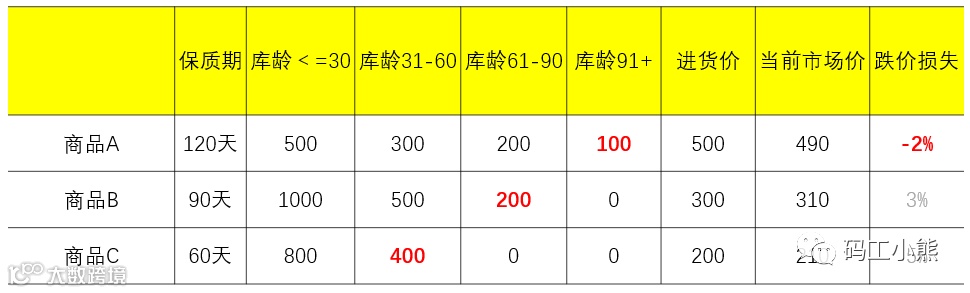 因此,一般商品会统计:库龄(入库多久)指标。在清货的时候,优先清理库龄较久的商品。同时,还会监控市场价格与对手产品。如果对手推出同级别产品,且市场上同级别产品价格已经下降,就开始产生跌价损失,需要及时调整价格了(如下图)。