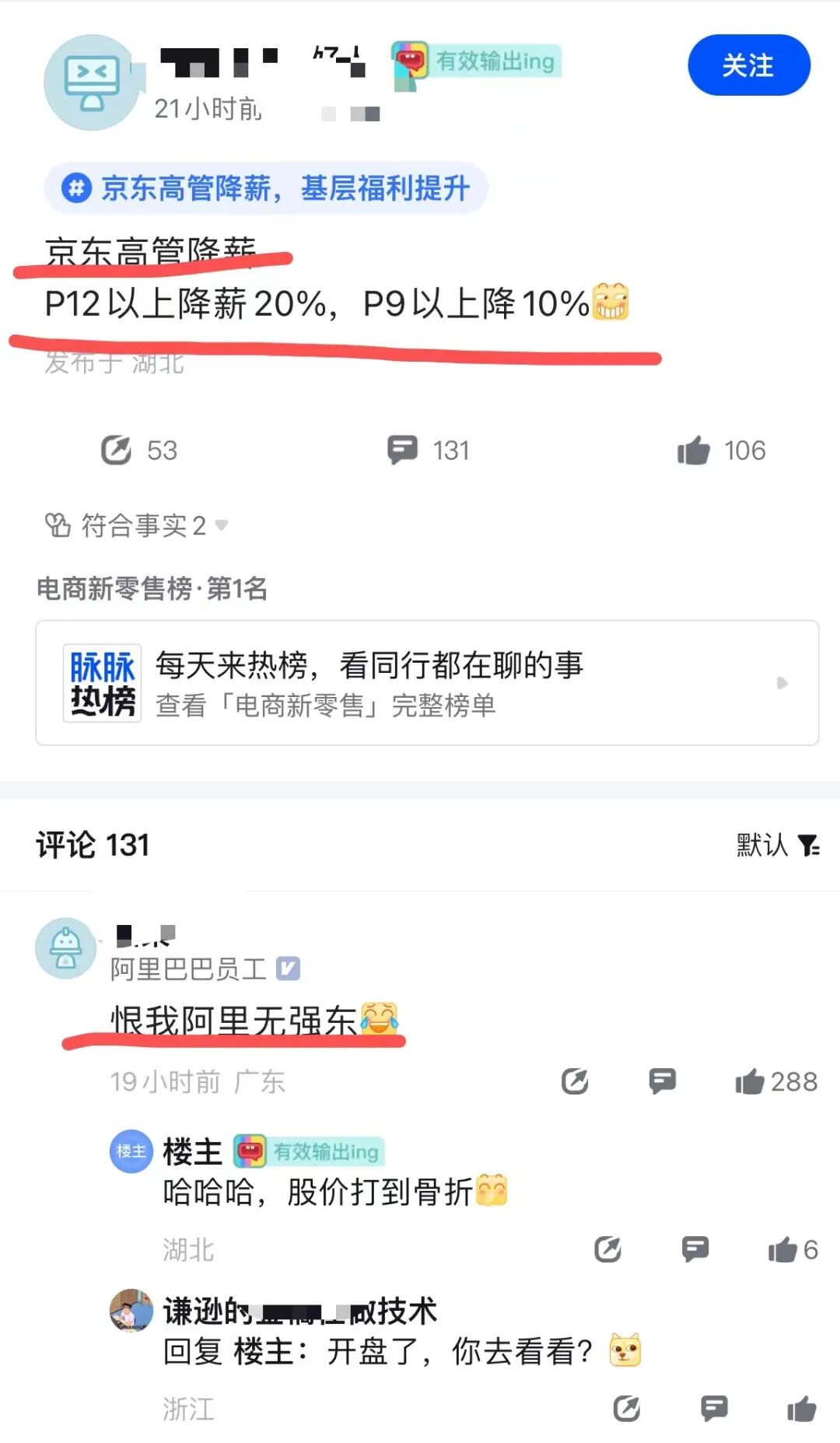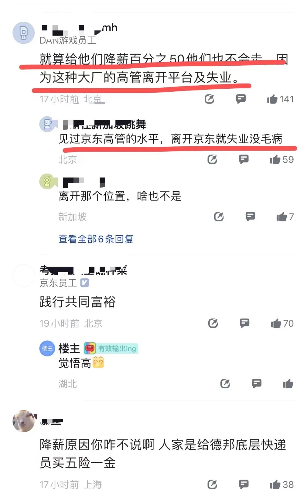 网友:就算给他们降薪50%他们也不会走,因为这种大厂高管离开平台即失业!