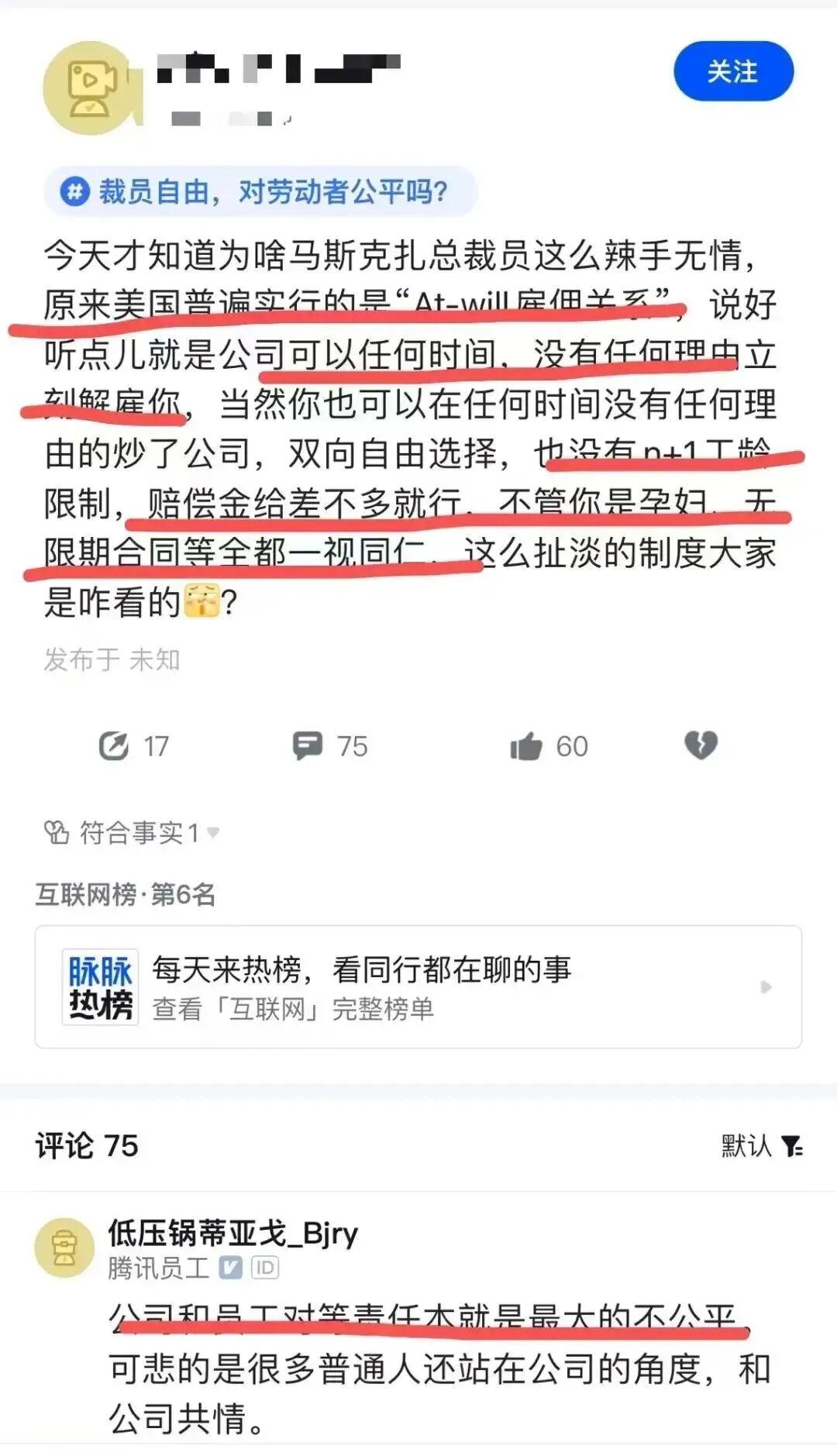 美国实行的是At-will雇佣关系,就是公司可以在任何时间,无理由解雇你,只要提前60天给notice就行,不管你是孕妇还是无限期合同都一视同仁。