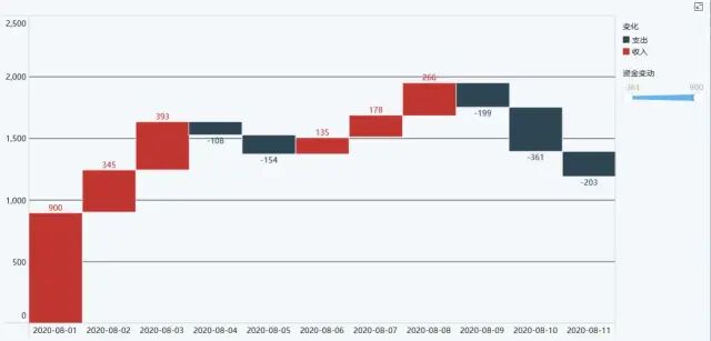 特点:通过悬空的柱形图,可以更直观的展现数据的增减变化。