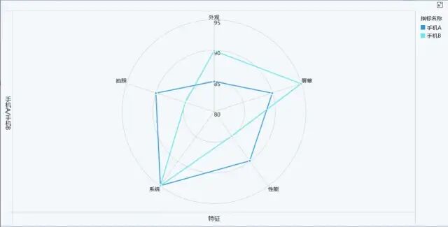 特点:雷达图变量过多会降低图表的可阅读性,非常适合展示性能数据。