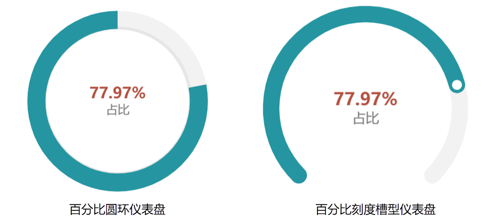 简介:仪表盘设定目标值,然后用于展示速度、温度、进度、完成率、满意度等,很多情况下也用来表示占比。